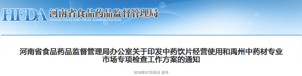 醫(yī)藥網(wǎng)7月11日訊 7月9日,河南省藥監(jiān)局印發(fā)《中藥飲片經(jīng)營使用和禹州中藥材專業(yè)市場專項檢查工作方案》,從經(jīng)營環(huán)節(jié)、使用環(huán)節(jié)和禹州中藥材專業(yè)市場三大方面,對中藥飲片重點檢查。