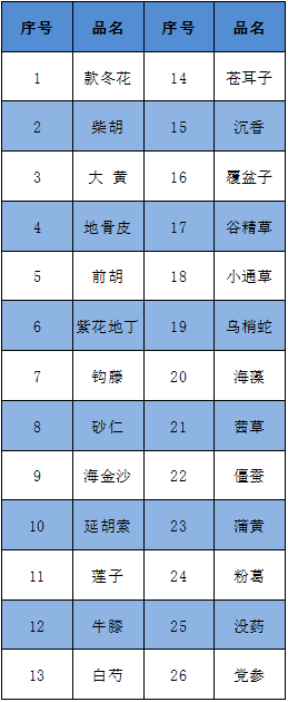 7月5日,甘肅省食藥監(jiān)局發(fā)布《2018年第二季度中藥飲片重點監(jiān)管品種名單》,款冬花、柴胡、大黃等26種中藥飲片被列入其中,具體名單如下: